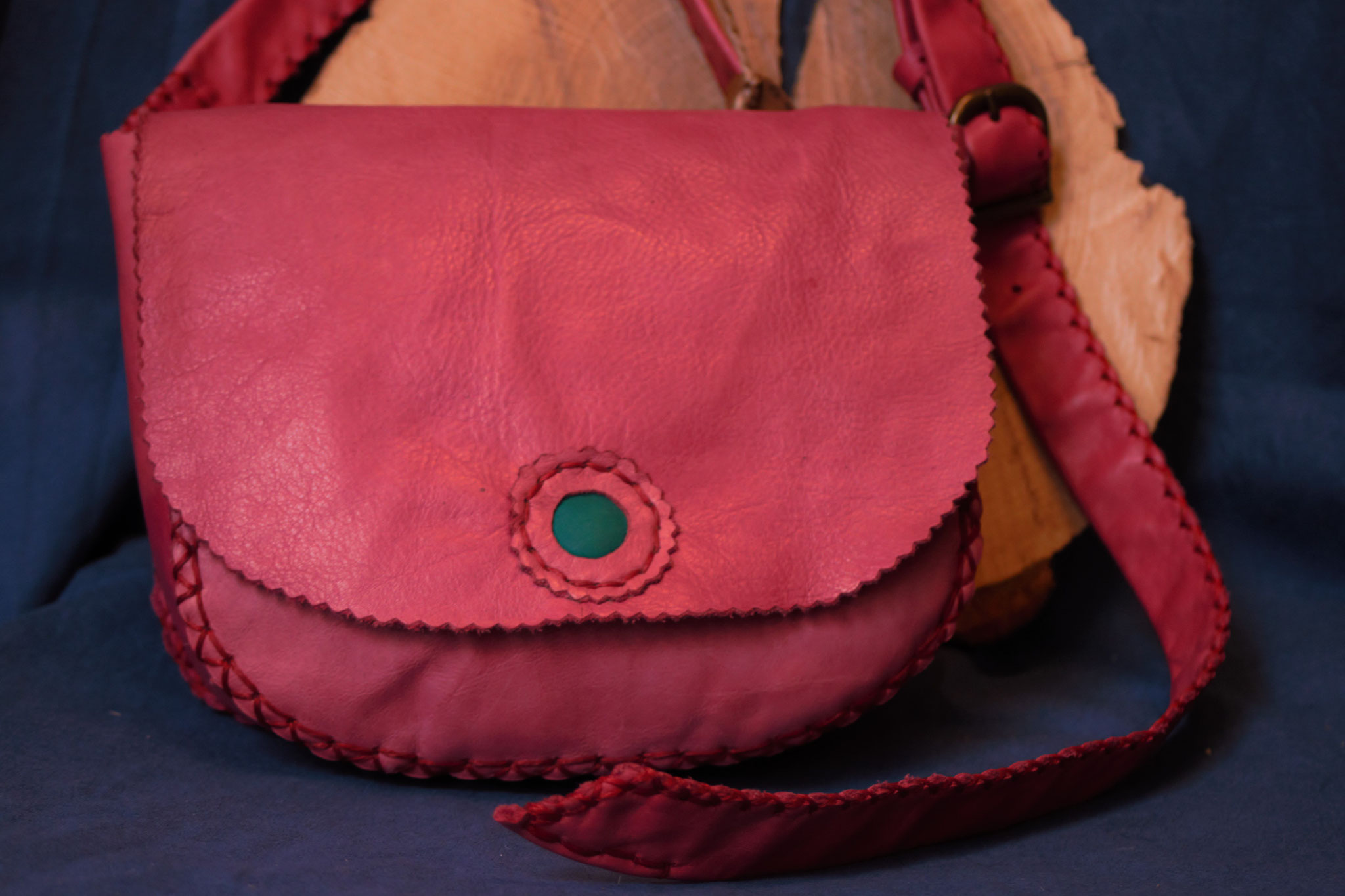 wunderschöne, handgenähte Ledertasche aus Rindsleder