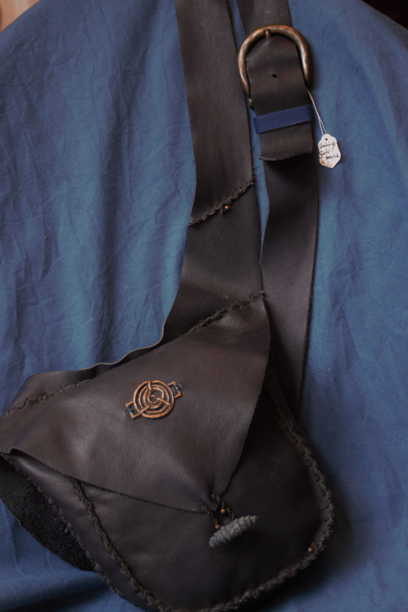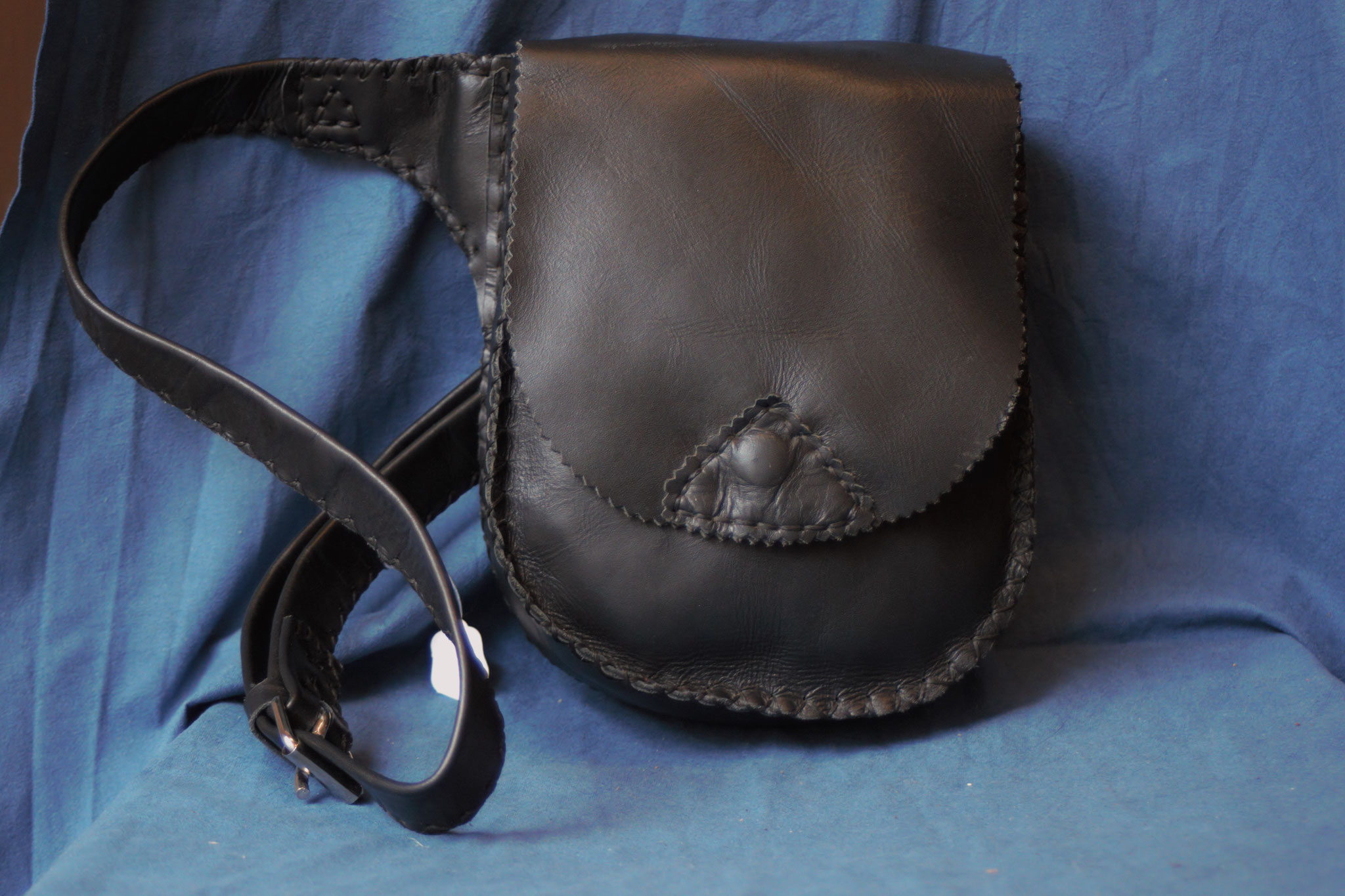 Handgenähte Ledertasche aus schwarzem Rindsleder